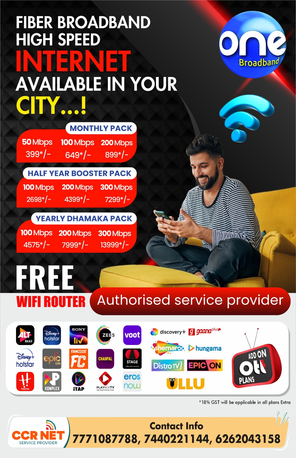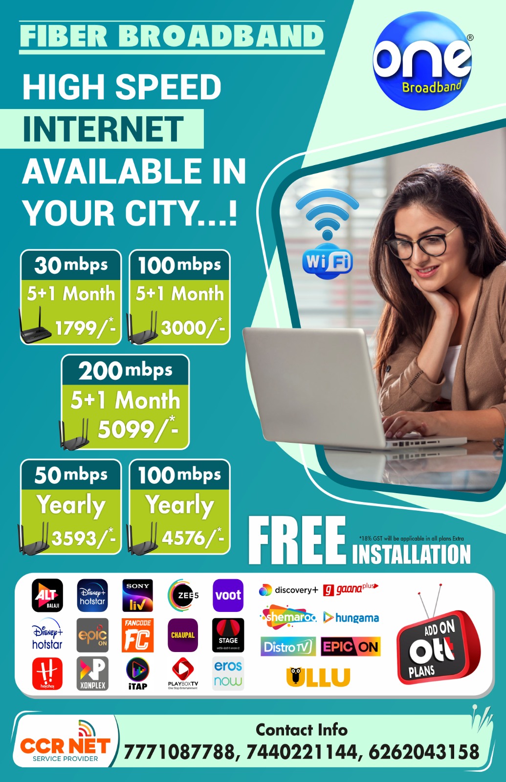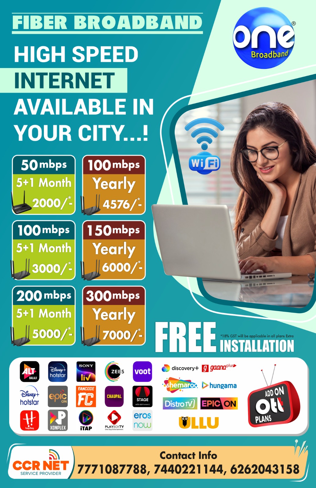 CCR NET SERVICE PROVIDER Is a franchise and installation partner of ISP Oneott Intertainment Ltd.